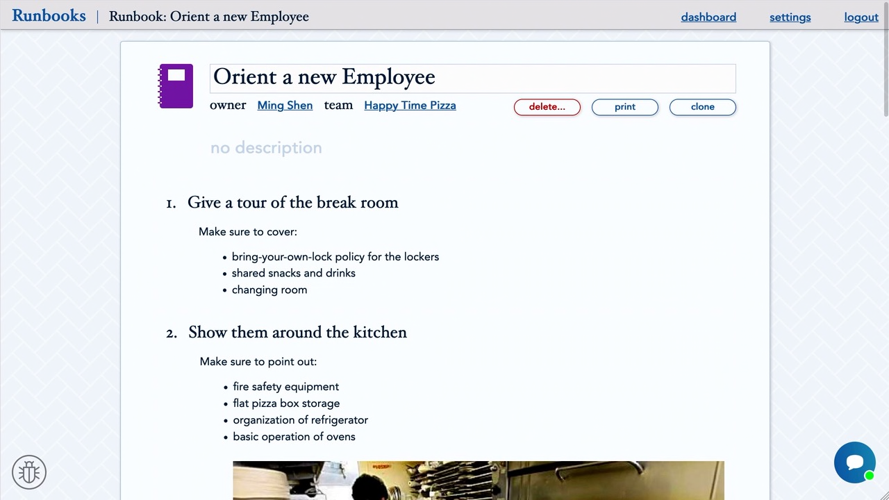 A runbook is a step-by-step guide. Think of it as the template for a super-charged checklist with images, tables, and everything else you need to make your instructions perfectly clear.