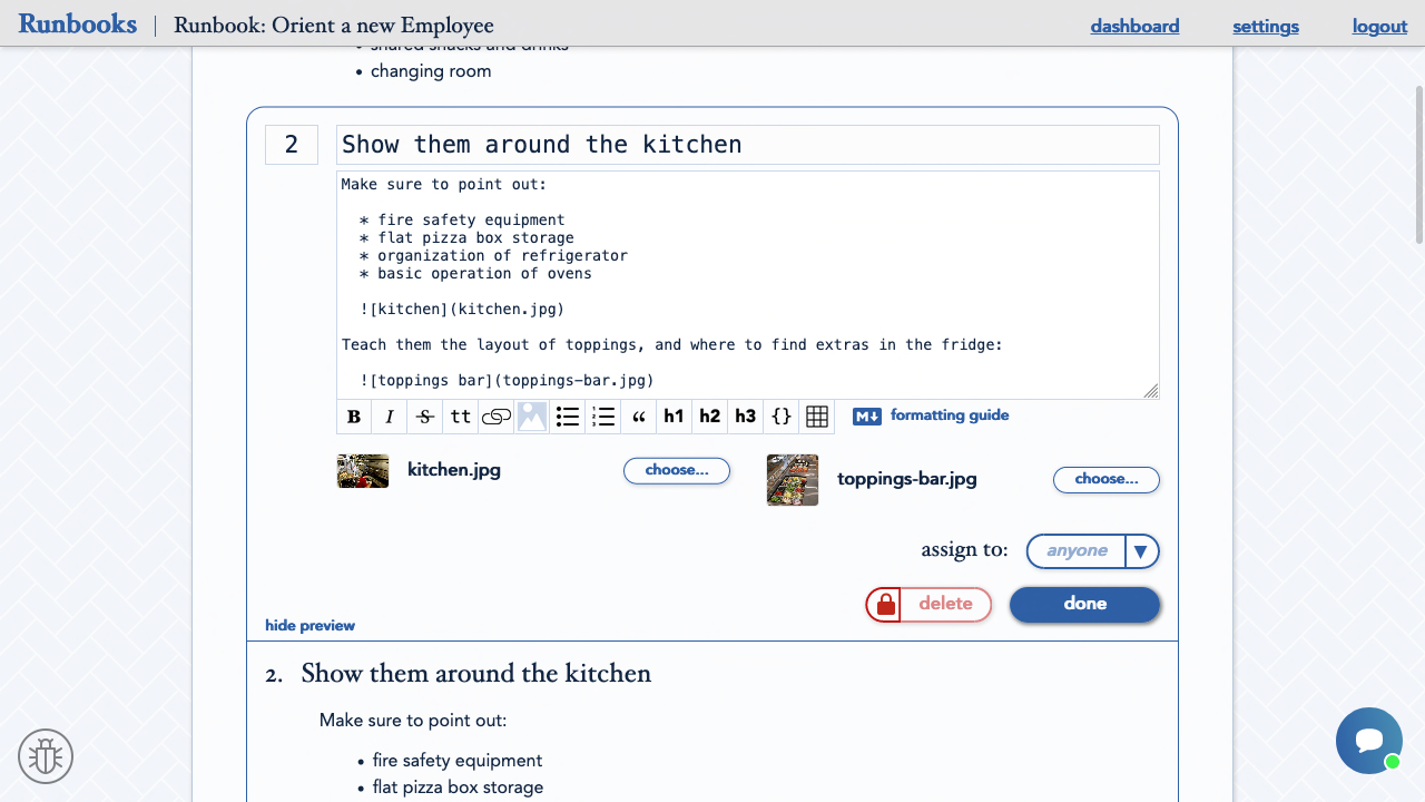 Create checklists for your employees. Runbooks keeps track of who did what and when. Get a complete picture right from your phone.